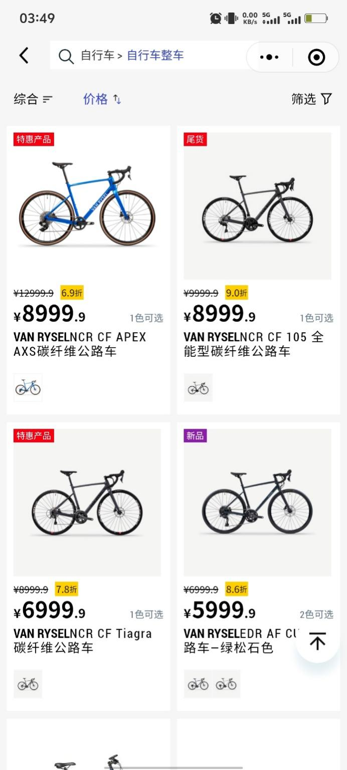 迪卡侬旗下许多公路车打折出售