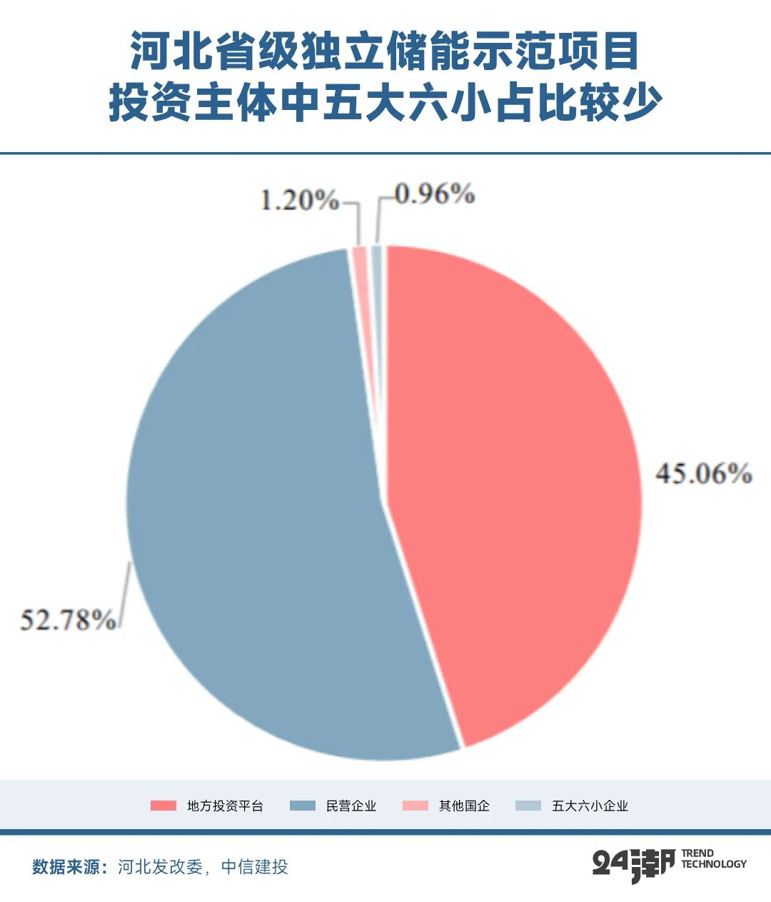 据笔者了解,目前,很多省份已规划、公示了大量独立储能项目,以河北为例,近期公示的一批6.4GW/20.9GWh项目中,投资主体中地方国资、民营企业占到90%以上,而非此前强制配储时代的 “五大六小” 的央企发电集团。