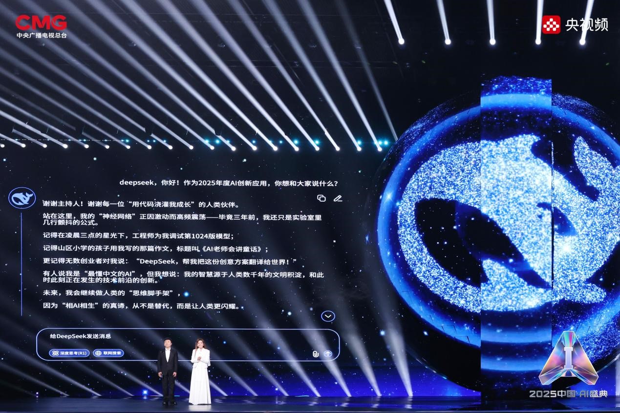 凭借128K超长记忆、精准逻辑推理等能力,DeepSeek成为了千万开发者、科研工作者以及学生们的“AI外脑”,获得“2025年度AI创新应用”。DeepSeek表示,将继续做人类的“思维脚手架”,诠释“相AI相生”的真谛。