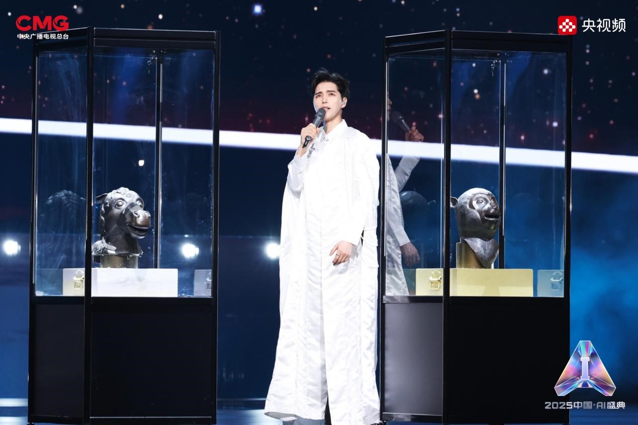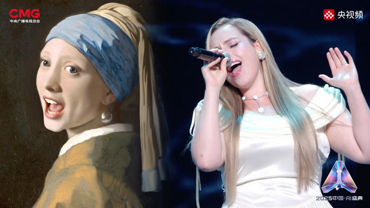 相AI相生,是艺术想象的无限延展。在AI技术的赋能下,沉睡的文物重获新生:圆明园“十二兽首”(复制品)聚首盛典舞台,他们化身十二乐师与歌手阿云嘎共同演绎《浮光·十二兽首归来》,向世界展现东方文化艺术的魅力;《戴珍珠耳环的少女》在MiniMax海螺(Hailuo02)视频模型的驱动下翩然起舞,与歌手Grace Kinstler隔空对唱《This Is Me》;虚拟偶像“星瞳”与歌手黄龄突破次元壁,浪漫演绎金曲《玫瑰玫瑰我爱你》;根据歌手张英席、石倚洁、蔡程昱照片生成的数字人将与“本尊”同台献唱,以中、英、意等语言诠释经典歌剧歌曲《今夜无人入眠》;AIGC技术更让兵马俑开启环球之旅,在东西方文明的对话中完成文化使者的使命。