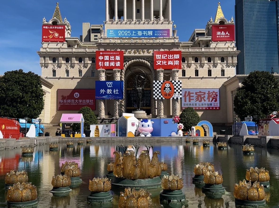 文学奖与作者受曝光的声量是各大出版展位推书的依据。有关茅盾文学奖得主金宇澄的《不响》还有孙甘露的《千里江山图》的宣传被印制成巨幅海报粘贴在上海文艺出版社的墙上,新经典文化则单独开辟一块“余华文学小卖部”供读者集中选择。在果麦文化展位,林俊杰、邓紫棋和脱口秀演员小佳这类明星的书籍被并列摆放。时下的热点也不能跟丢,凤凰出版传媒集团趁着书展时机推出新书《苏超来了》,用书堆出五星形状,还在展柜粘贴了苏超在足球场拍摄的照片,一时引来不少围观。