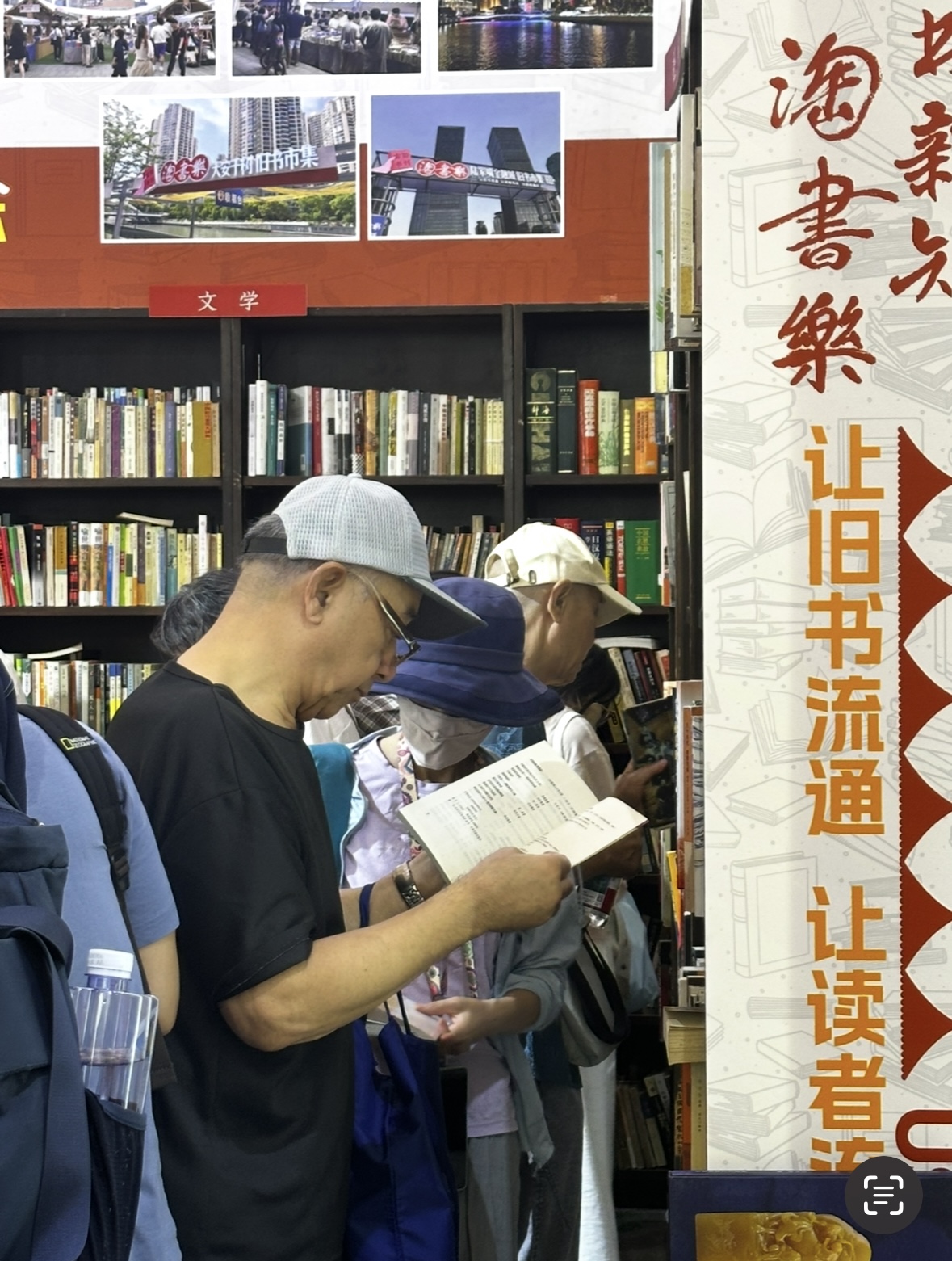 各大出版集团在上海展览中心的位置保留了往年格局。中央大厅东侧的“旧书新知”全国邀请展是今年新增的板块,各地古籍书店给读者带来绝版老书,既有横向翻阅的连环画小集子,还有几十年前的四大名著版本。不少都套上防尘灰的塑料袋,纸页边缘已经卷翘泛黄。这里很受中老年读者的青睐。