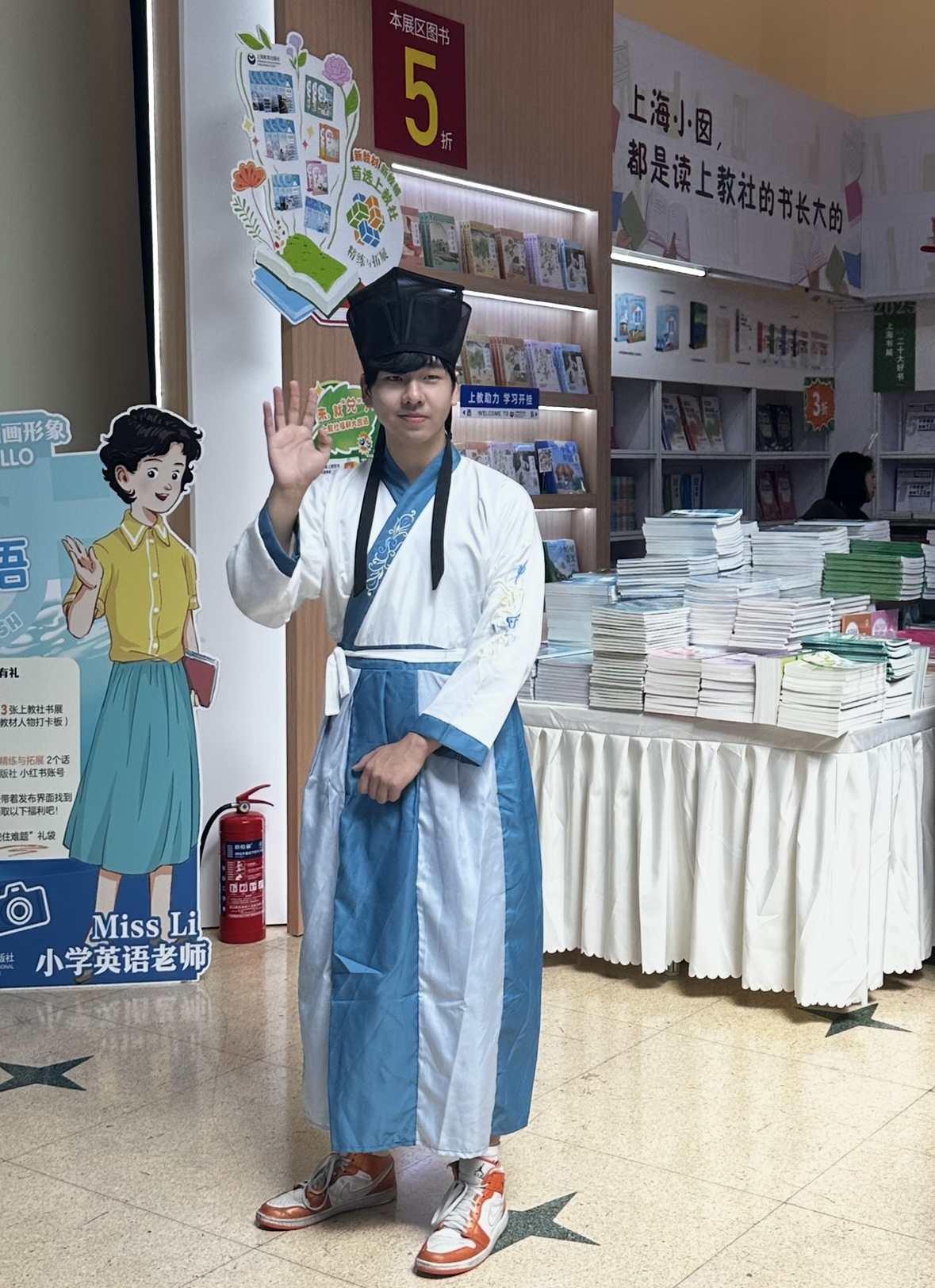 展厅内一些身穿古代服饰招手揽客的工作人员也颇引人注目,一位头顶金字塔形状毛绒帽的小伙子会举着牌子在走廊巡游,向人们介绍“凭买书小票领取古埃及文明展门票”的活动。