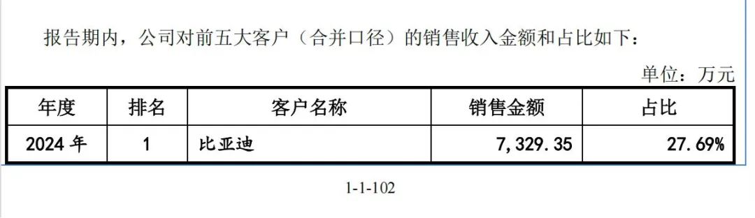 纵观《招股书》发现,过去三年,比亚迪始终稳居大鹏工业第一大客户,销售收入分别为1.24亿元、0.46亿元、0.73亿元,占当年营收的49.95%、17.83%、27.69%。三年时间销售收入合计占总收入约三成。