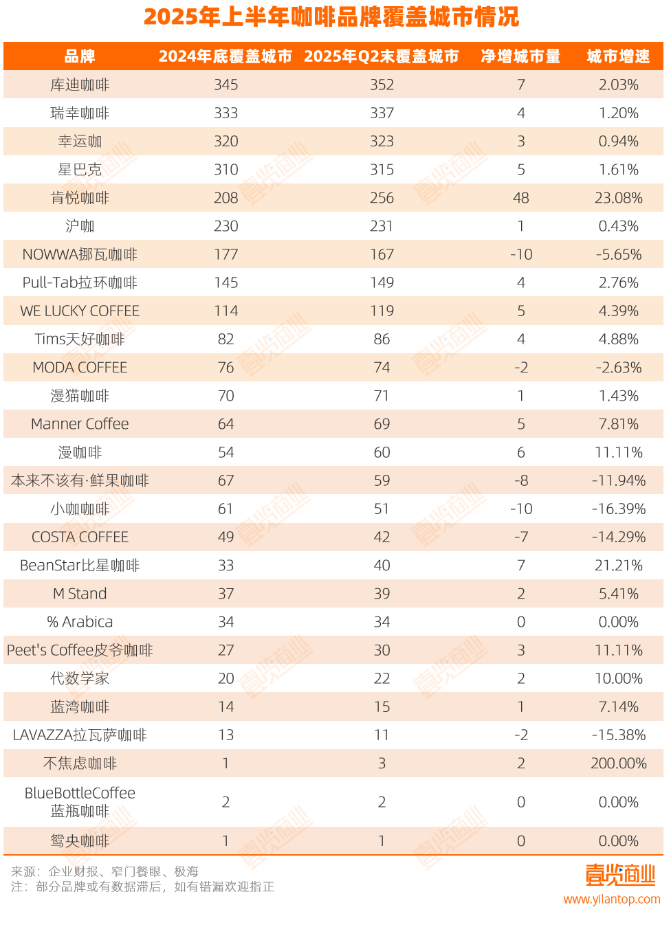 总体看,上半年增长态势良好的品牌要么具备极致性价比,如瑞幸、幸运咖;要么依托成熟场景或轻资产模式迅速扩店,如库迪、肯悦咖啡。