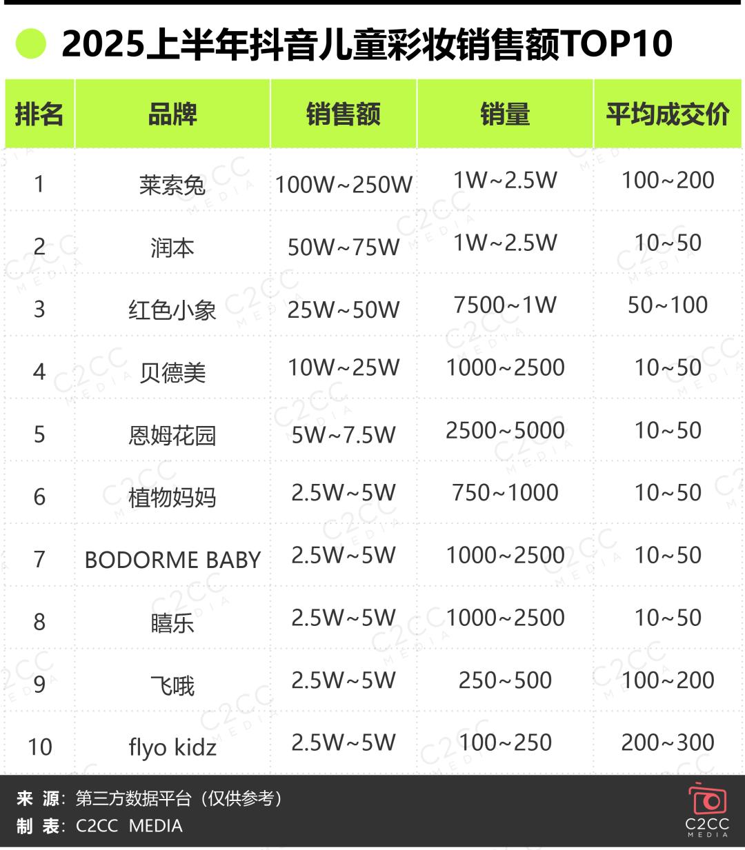 03、抖音儿童彩妆TOP10,头部断层下的蓝海潜力