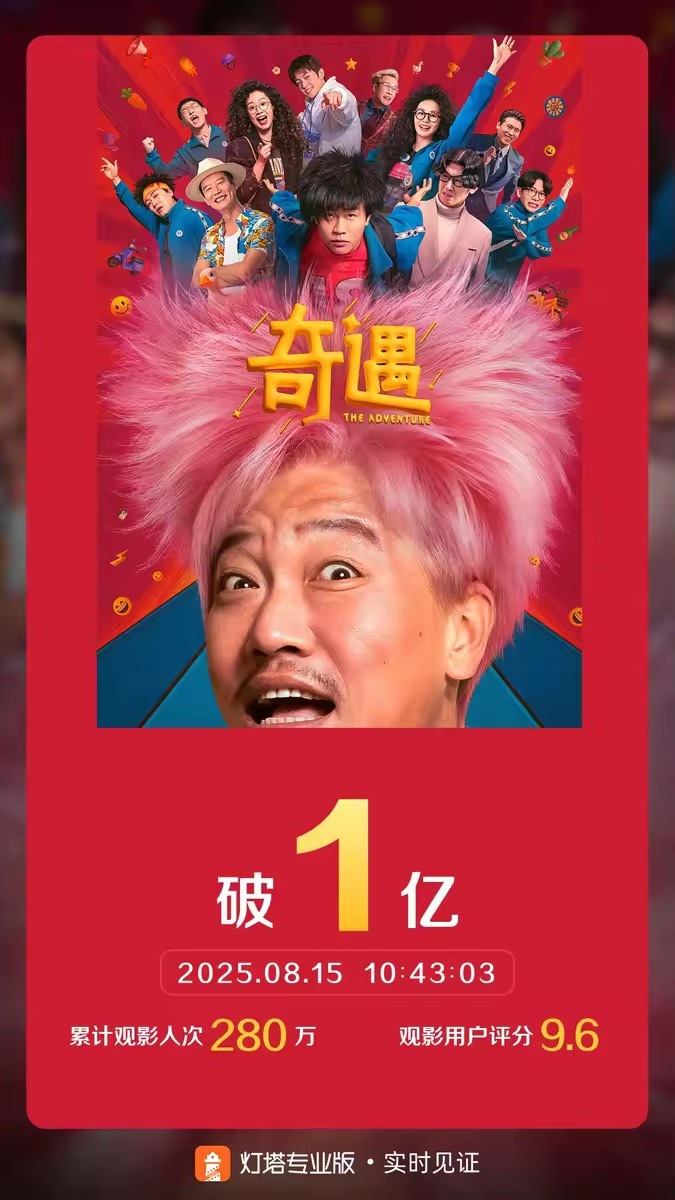 据灯塔专业版实时数据,截至8月15日10时43分,影片《奇遇》票房突破1亿元。