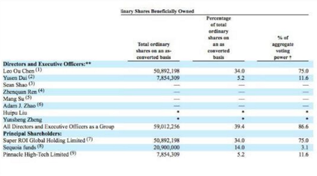 红杉资本持有20,900,000股,占股14%,为第二大股东,拥有3.1%的投票权。聚美优品联合创始人戴雨森持有7,854,309股,占股5.2%,拥有11.6%的投票权。