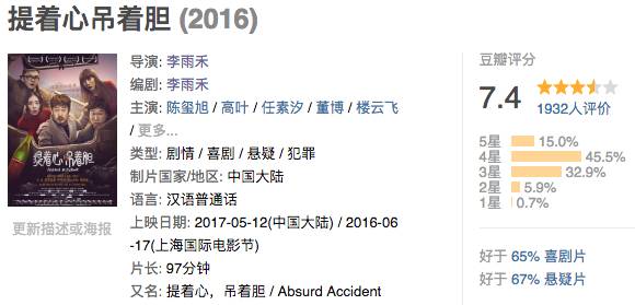 如今的华语电影市场,以讲故事见长的电影太少了,这也是即使[提着心吊着胆]这部处女作还有不足,也想要推荐它的原因。