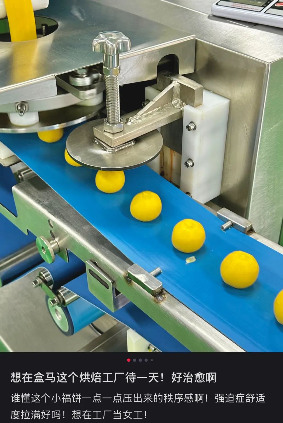 那就是食品在流水线上被大批生产出来的景象,实在太解压了。