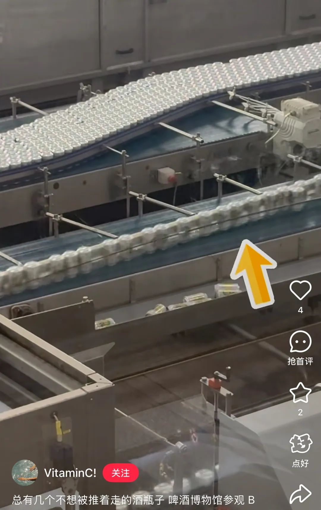 它们把整个啤酒的包装流程展示出来,然后让他们一听挤一听得从这里转运到哪里。