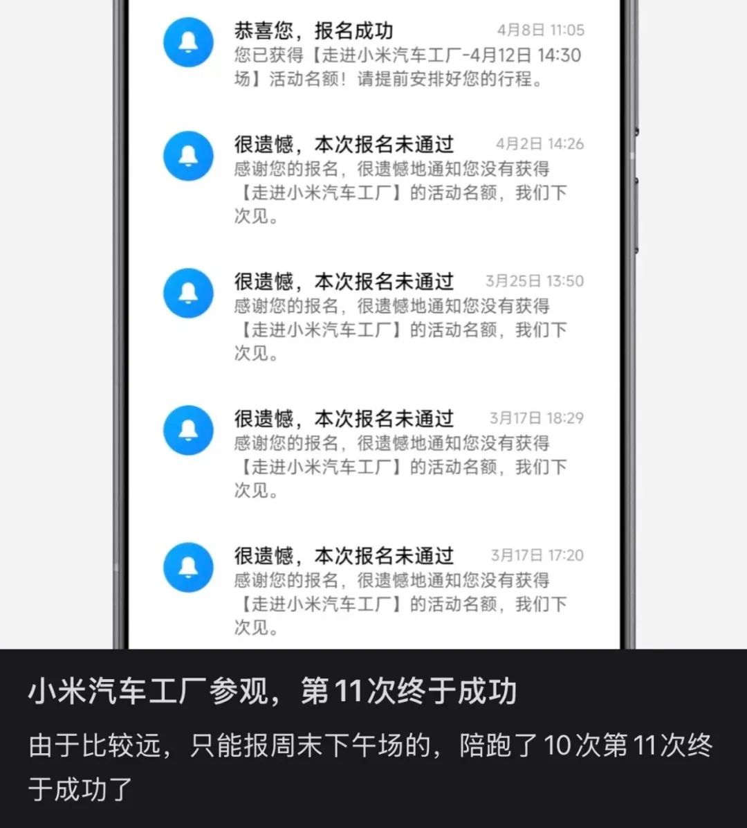 今年,小米举行的“走进小米汽车工厂”在1月份举行的活动,限额只有60人。