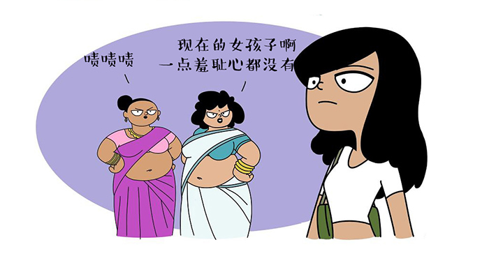 这个艺术家将自己的漫画形容为“窥探生活某一侧面的搞笑网络漫画,旨在用一种嘲讽的方式突出一些嘀笑皆非的事实,以及挖掘盛行于印度家庭和社会的刻板印象”,正如下面的漫画中所呈现的那样,内容涉及到传统婚礼、服饰礼仪,以及迷信的母亲和令人尴尬的父亲等。