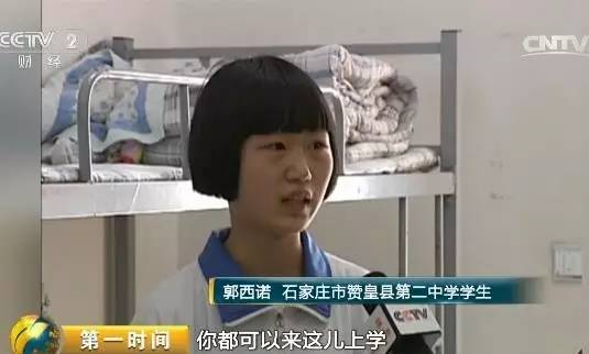 石家庄市赞皇县第二中学学生 郭西诺:只要你是(赞皇县)山区五乡的,不管你的成绩怎么样,你都可以来这儿上学,都可以来这儿接受教育。