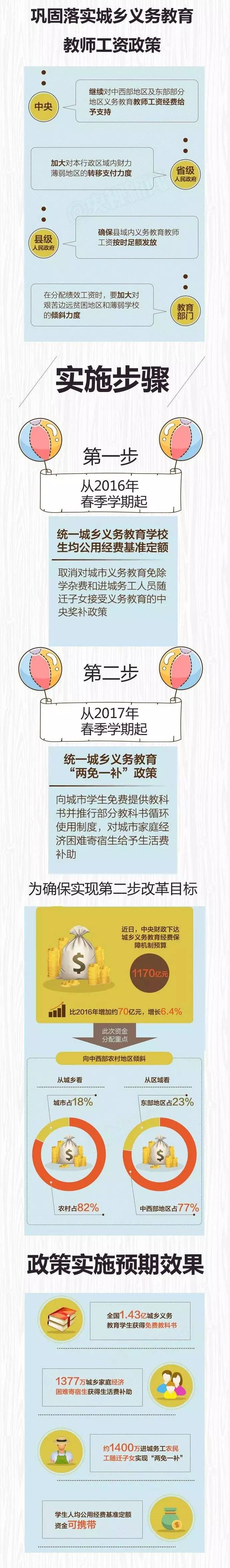 2017年,中央财政下达城乡义务教育经费保障机制预算1170亿元,这比2016年增加了约70亿元,增长6.4%,以确保实现《国务院关于进一步完善城乡义务教育经费保障机制的通知》的第二步改革目标。这千亿元预算要怎么花?谁将从中受益?赶快看看!