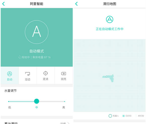 当机器认为已经把地面清扫的相当干净,则会有语音提示“工作完成”,紧接着便会自动返回充电桩。清洁时长要看具体的地面洁净程度和房间大小来定。如果在工作过程中电量不够,也会自动寻找充电座进行充电。