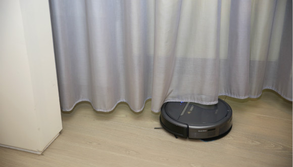 值得一提的是,当机器人发现前方有疑似障碍物时,会自动降低行进速度,判断继续行进或避让。如果触碰到的是窗帘这些软质的物品,机器人则会恢复到原有行进速度继续进行清扫。当触碰到家居、墙壁时,则会转弯避开。为了能让机器人更顺畅的工作,清洁之前最好将地面上一些可能阻碍机器人行进的物品移开,例如电线、孩子细小的玩具、有一定厚度的垫子等等。