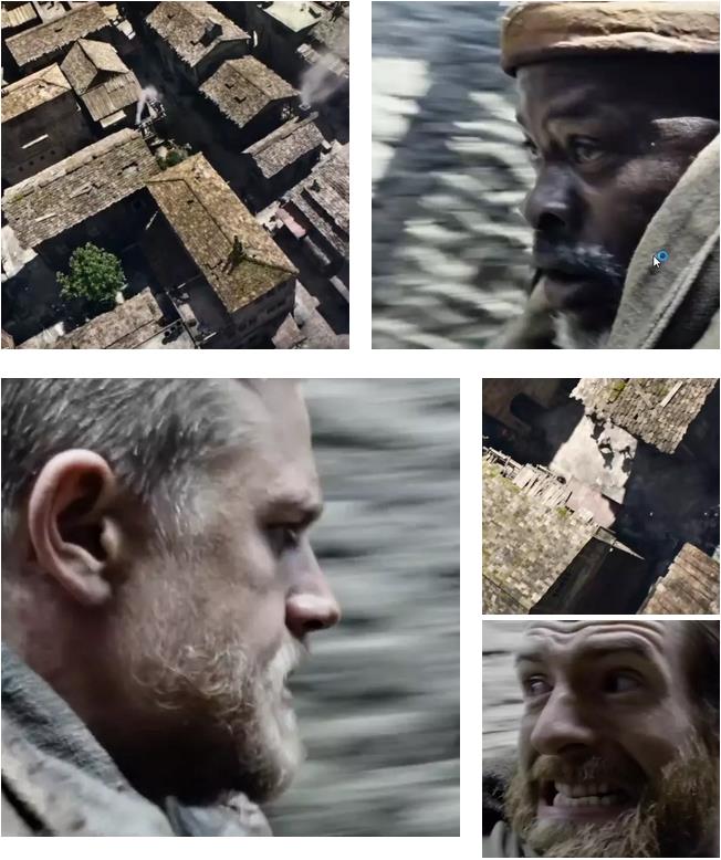 接着出现了成为孤儿的亚瑟在街坊间混大的成长经历,伴随着摇滚风格的时髦配乐,和一系列令人眼花缭乱的快速剪辑,懂盖·里奇的人都会心一笑:好,来了。