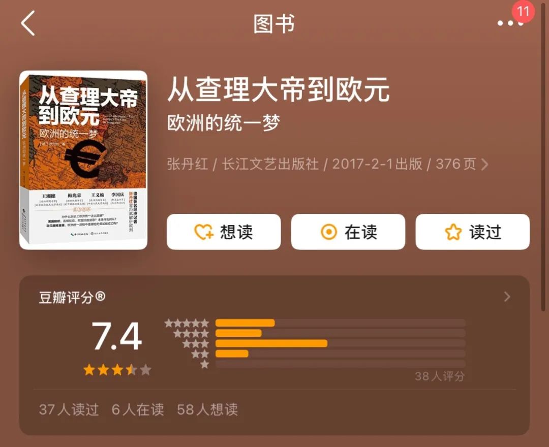 张丹红还著有《从查理大帝到欧元》一书,该书2017年在长江文艺出版社出版,豆瓣评分7.4,不过只有38人参与评分。豆瓣信息显示,张丹红读研期间专注于海涅研究,到德国后对经济产生兴趣,2015年5月,张丹红成为德国之声第一个非母语专栏作家。众多德国著名的中国问题专家和经济学家都是她忠实的读者。