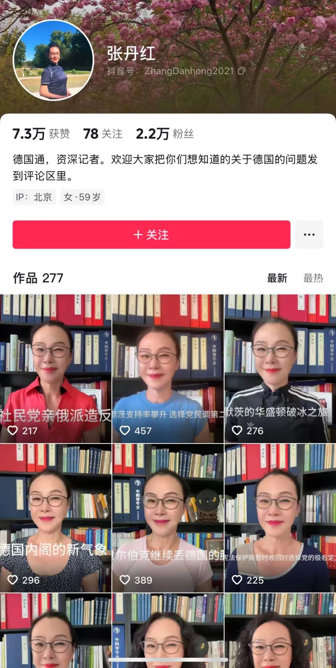 值得注意的是,就在与李国庆结婚请柬流传出来的6月18日下午4点多,张丹红还不忘工作,在抖音和视频号同步更新了“谈德国”的两条原创视频内容。