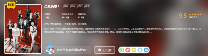 在IP创作源头,索尼展现出培育中国本土IP力量的决心。动画领域,Aniplex与B站联合出品的《凸变英雄X》是索尼深度参与中国动画IP原创的标志性尝试,也是索尼在中国动画内容创作源头卡位的战略性一步。