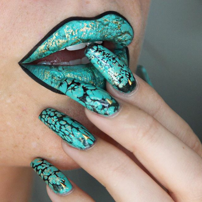 如果你喜欢去年曾十分流行的人体大理石图案彩绘,那你一定等不及看我们为你准备的这个大理石纹唇妆了!
