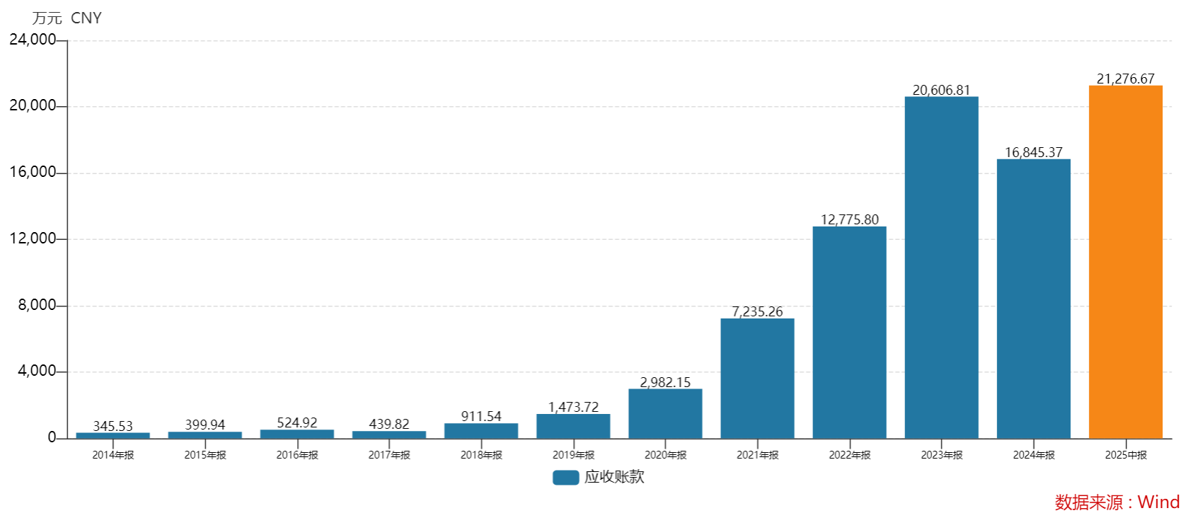 经营业绩下降的同时,爱美客应收账款创下历史新高。6月底,爱美客应收账款达2.13亿元,较去年底增长26.79%。