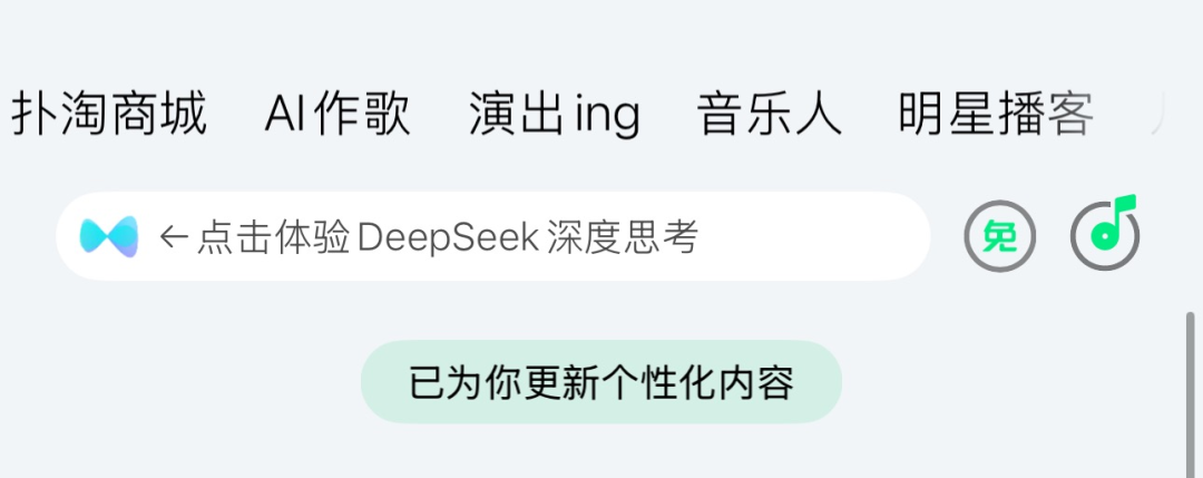 打开QQ音乐的APP,不难发现这个应用正在不断地叠加内容,APP上方的内容入口数量已经达到15个,除了两个音乐入口,还有听书、AI音乐、商城、明星演出等。