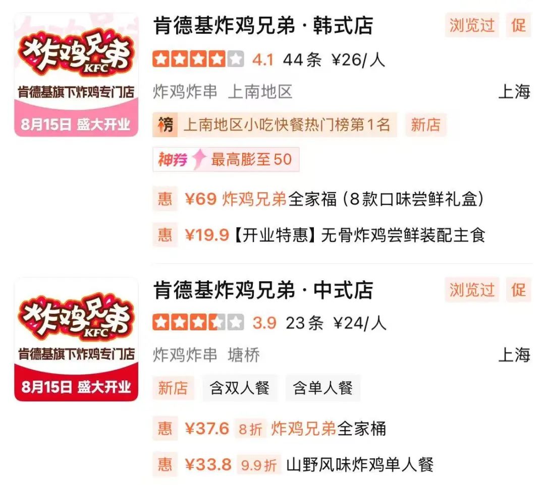 近日,肯德基旗下两家炸鸡专门店——炸鸡兄弟中式店、炸鸡兄弟韩式店开业。