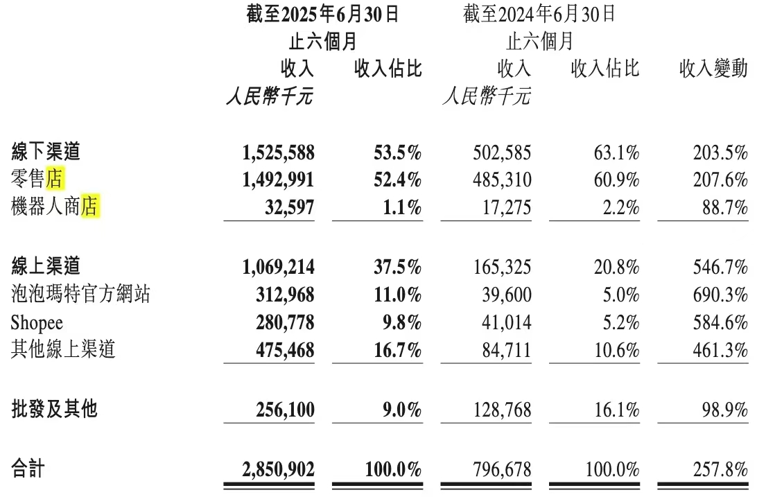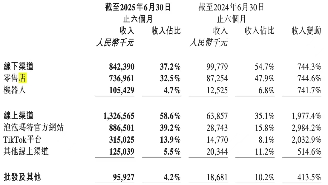 上半年,泡泡玛特来自国内和海外零售店的销售收入分别为:44亿元和25亿元。