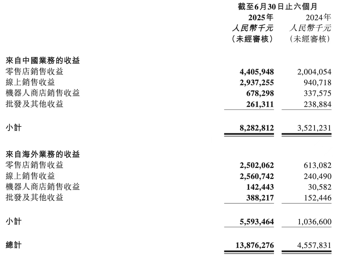 欧洲深化区域总部建设,上半年净增4家线下门店,门店数量从截至2024年12月31日的14家增至截至2025年6月30日的18家。