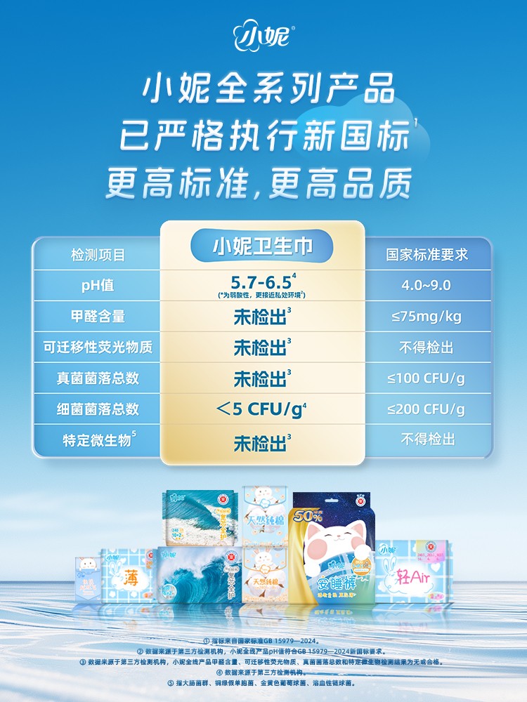 “CNAS认可”是国内官方权威的实验室认可体系,需定期接受严苛动态监督与能力验证。小妮拥有国家CNAS认可的实验室,是对技术实力的权威背书。这里,以超国标标准严控品质安全:可迁移性荧光物质0检出、致病菌“不得检出”、背胶张力/水分含量等每条生产线每班抽检...小妮用极致坚守的高标准,赋予消费者最大安全感。