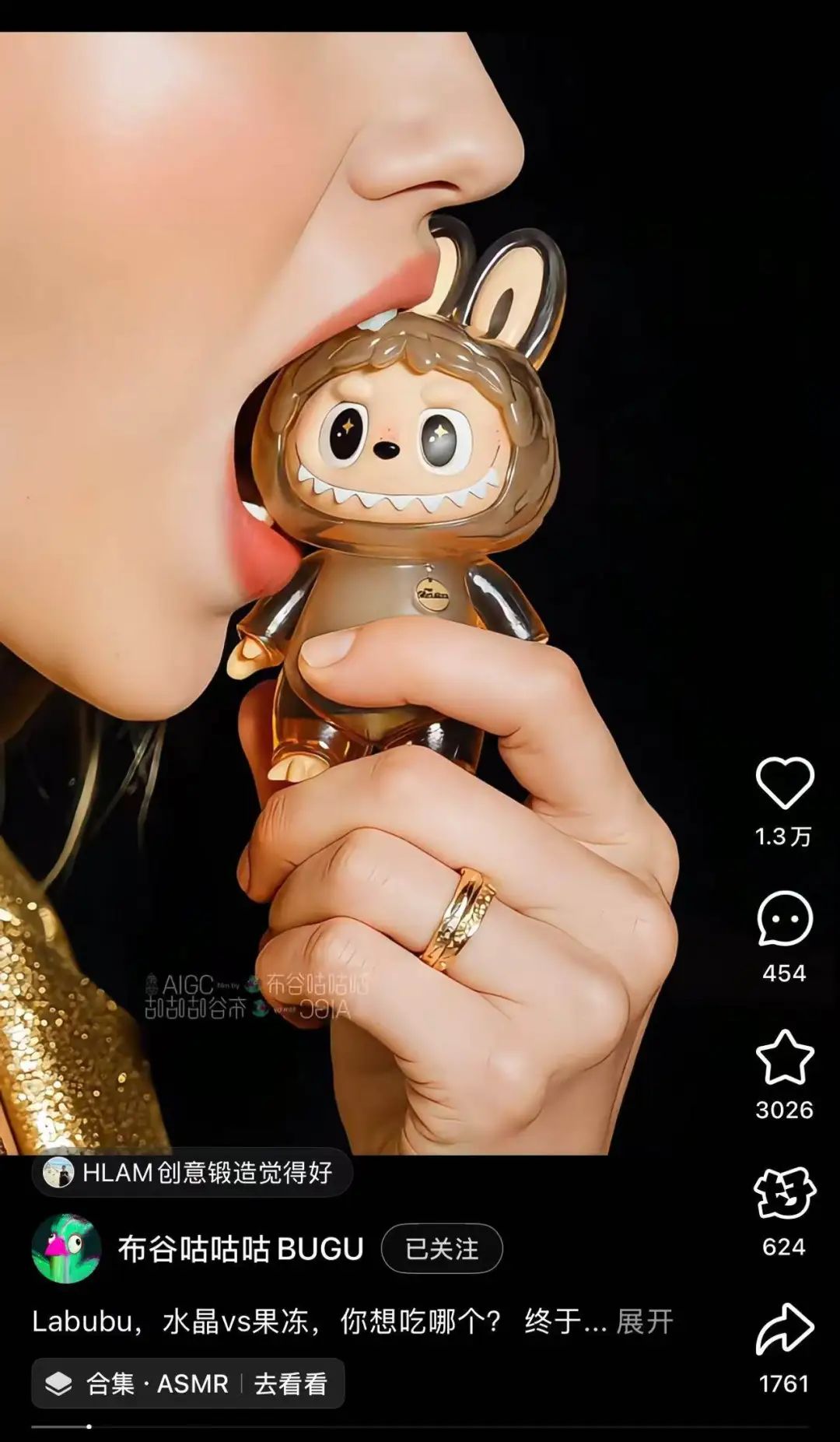 在最新爆火的AI的吃播里,什么都可以成为食物:既有一口咬开手办loopy,也有吃起来嘎嘣脆的钻石披萨、水晶鸡腿等。不同于常规吃播,这些视频都是通过AI技术合成的,也被称为“沉浸式吃播ASMR”。