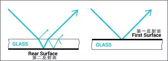 而平常我们用的镜子一般都为第二反射面反射,不仅反射率低,对波长无选择性,而且易产生重影。