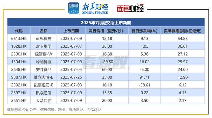 图1:2025年7月港交所上市新股