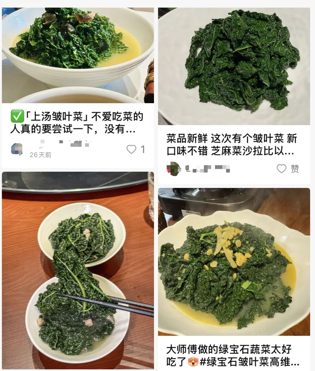 但餐饮人对原料的挖掘总是乐此不疲。如今,这场属于健康蔬菜的“泼天富贵”,或许要轮到皱叶甘蓝了。在不少火锅店、中餐馆里,都不乏能看到皱叶甘蓝的身影。