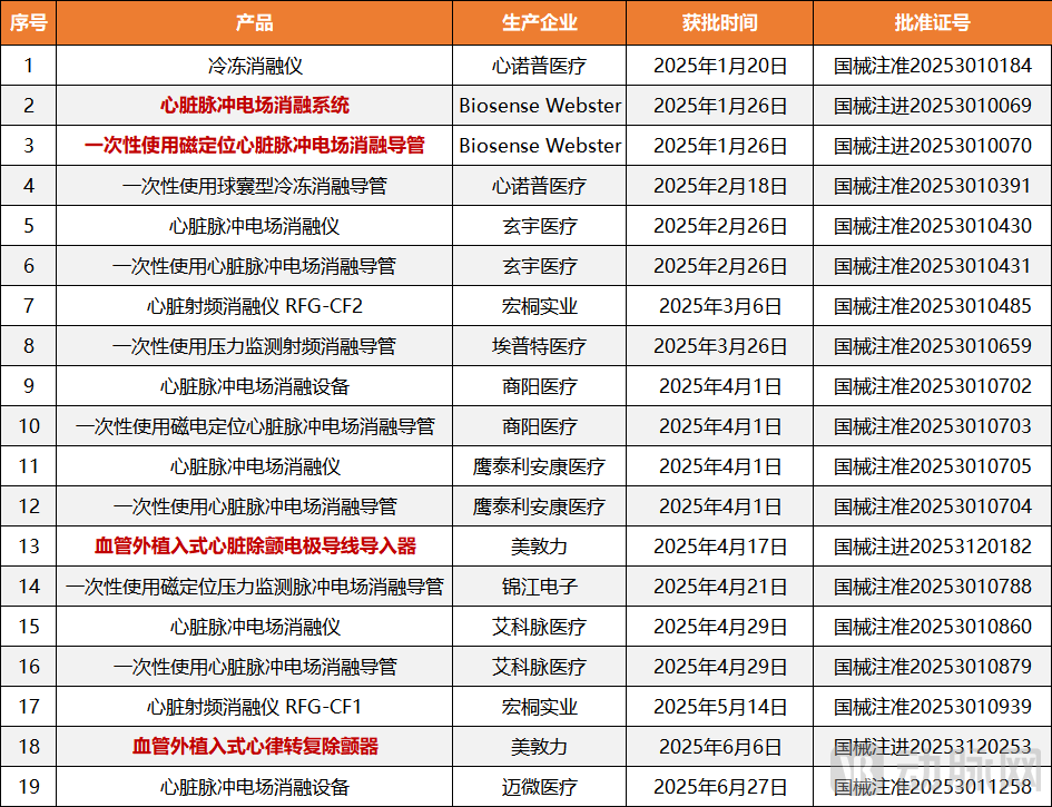 图1.2025年上半年NMPA已获批电生理产品(数据来源:国家药监局)