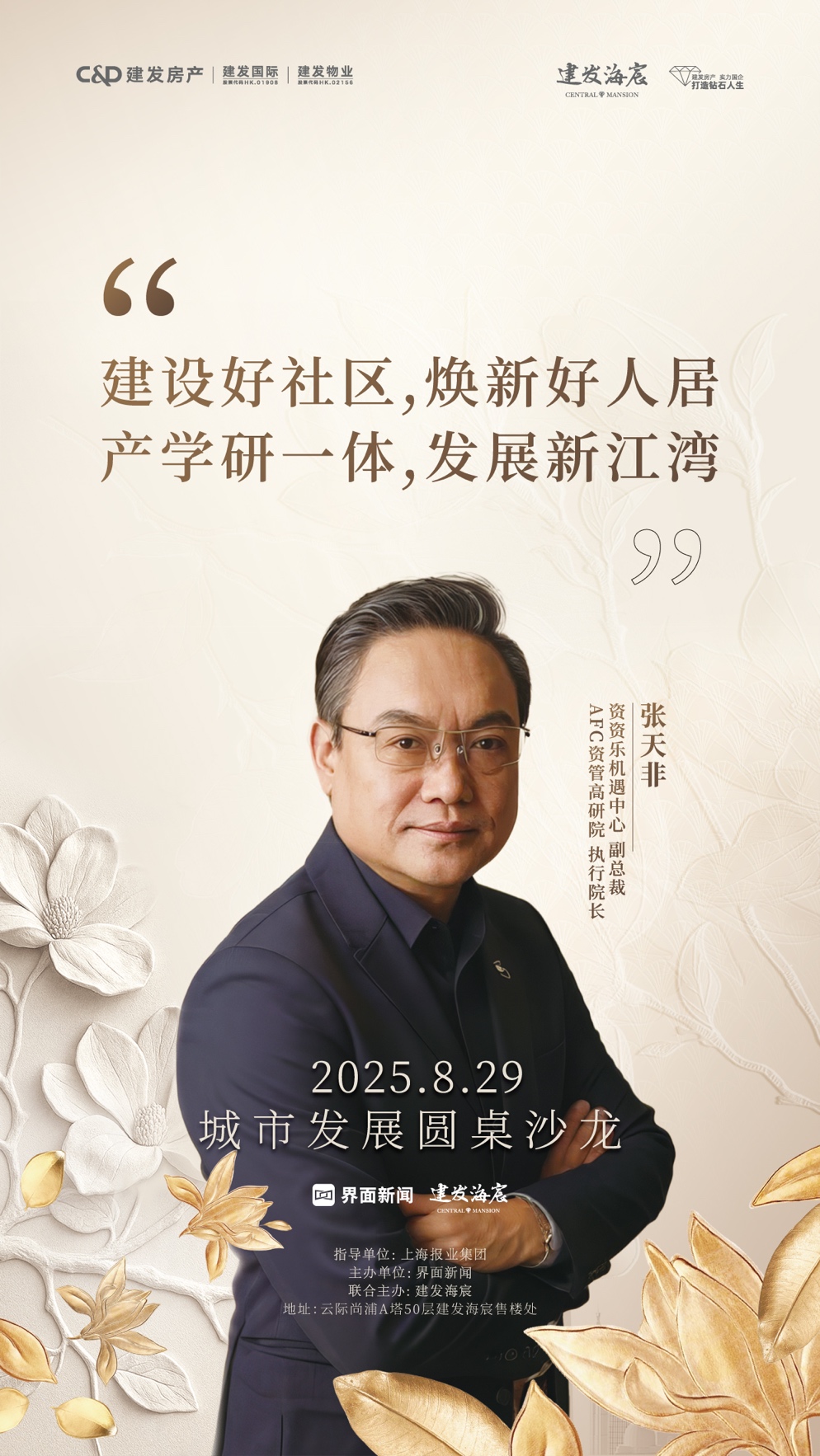 由上海报业集团作为指导单位、界面新闻主办、建发海宸联合主办的海派对话新江湾2025城市发展圆桌沙龙将于2025年8月29日星期五在建发海宸售楼处50层举办(上海市杨浦区淞沪路770号云际尚浦A栋)。本次活动旨在以新江湾发展为锚点,共同探讨企业如何在城市发展之路中抓住新机遇、焕发新动能。资资乐机遇中心副总裁、AFC资管高研院执行院长张天非确认出席。