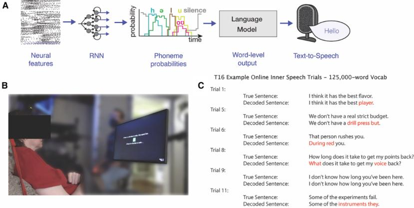 屏幕上,她刚刚在脑海中“说”出的话,正以每分钟超过60个单词的速度被实时翻译成文字。对于一个近十年来无法开口说话的人而言,这一刻无异于奇迹。借助先进的人工智能算法,她脑海中的思维,正以前所未有的74%准确率,被世界“听”到。
