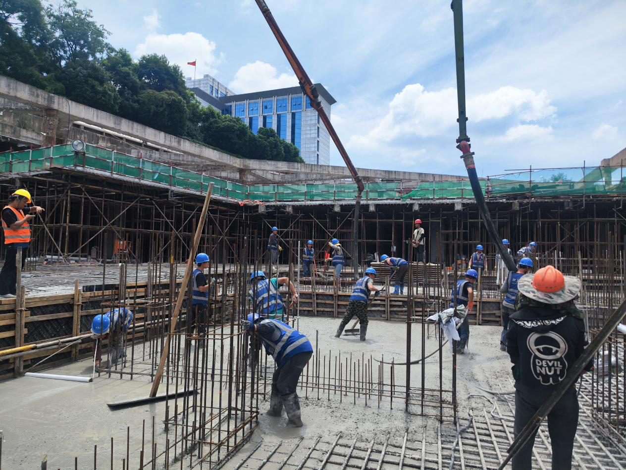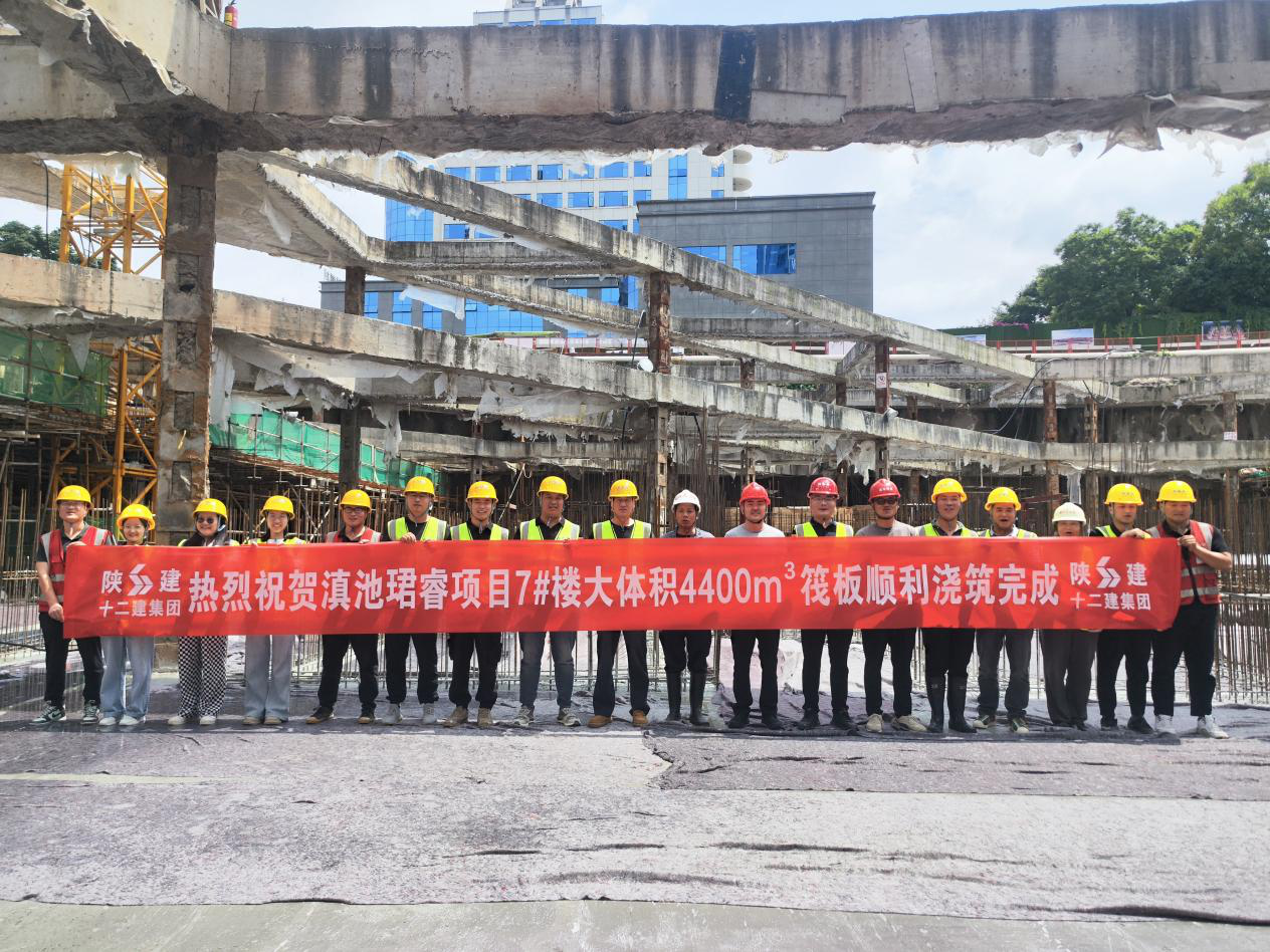 8月19日,由云南良黎房地产开发有限公司投资建设、陕建十二建集团承建的昆明滇池珺睿项目迎来关键性突破:7#楼超高层筏板历经56小时连续浇筑,提前10小时完成4400立方米大体积混凝土一次性浇筑任务,标志着工程全面进入主体施工阶段,为按期交付奠定坚实基础。