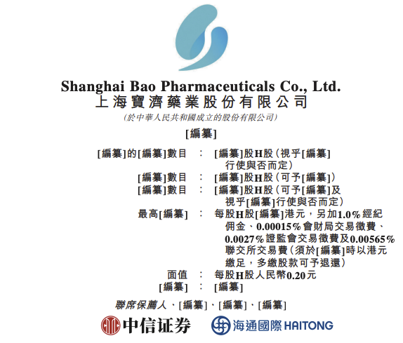 据港交所文件,8月21日,上海宝济药业股份有限公司向港交所提交上市申请书,联席保荐人为中信证券、海通国际。