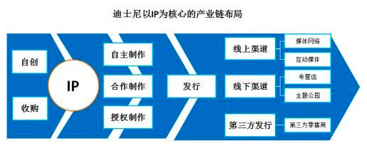 在林焕杰看来,迪士尼的IP矩阵和品牌号召力,源于其相关性极强的完备产业链布局——媒体网络、主题公园及度假村、影视娱乐、消费品以及互动娱乐五大业务板块,多条业务线为迪士尼IP构建了可以流转和增值的空间。2016财年迪士尼财报显示,其主营业务由媒体网络(电视)、乐园度假、影视娱乐(电影)及产品销售(周边产品)依次占营收比分别为42.58%、30.51%、16.97%及9.93%。中信建投证券指出,凭借迪士尼的超级IP,迪士尼乐园的客单价和二次消费(餐饮、衍生品、住宿)占比均领先于其他行业巨头。