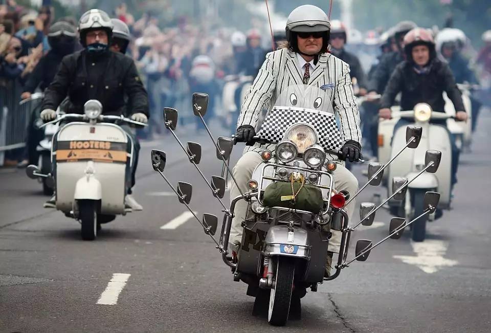 说起来,这种名为mod的亚文化,起源于英国。英国嘛,大家都知道,是个出绅士的国度,但是绅士很多时候也有一颗不安分的心呀。可是,往日里西装革履,要怎么去实现他们的机车梦呢?