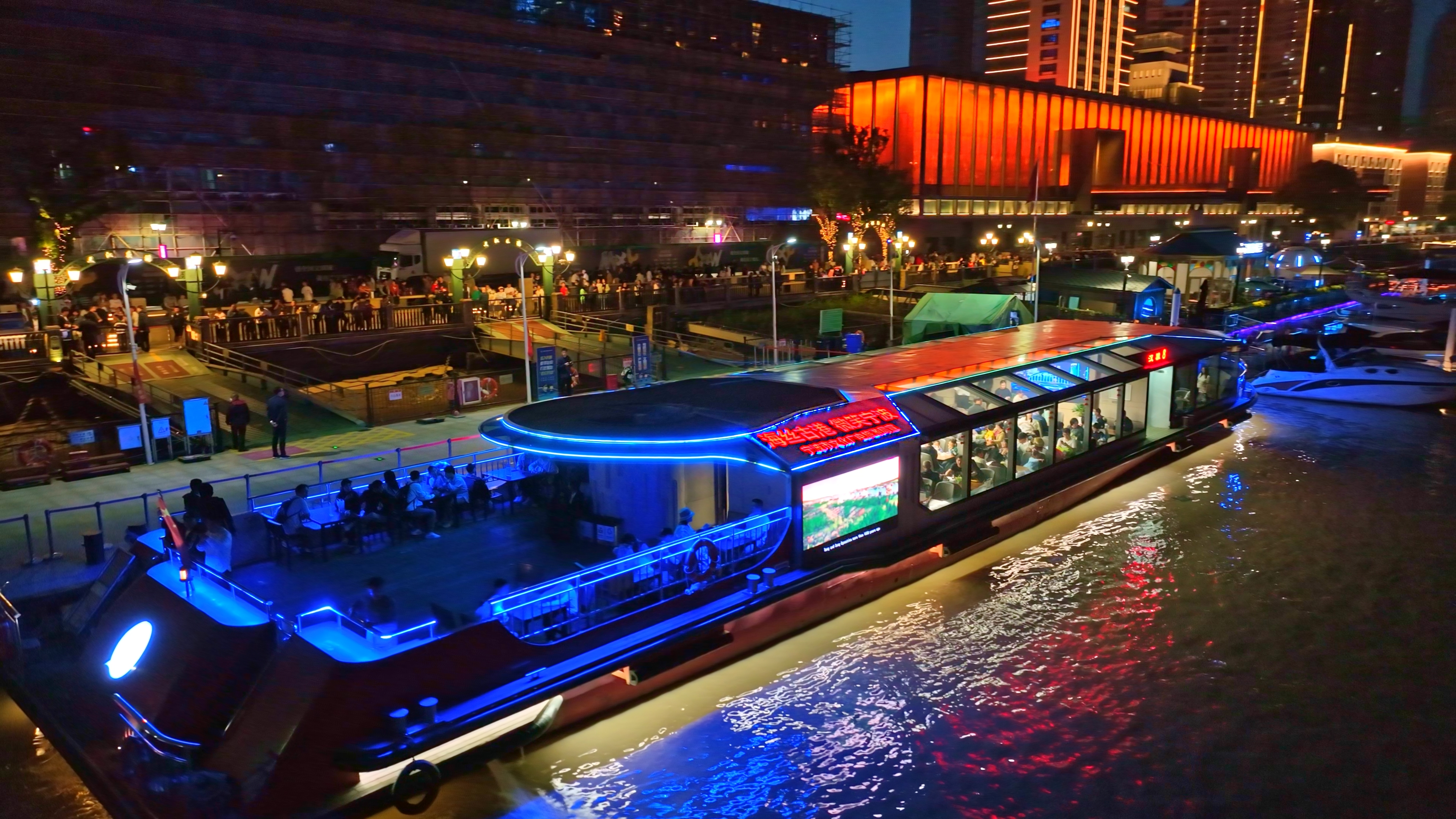 暮色中的三江口华灯初上,代表们登上“汉雅8号”游船,开启“映舟三江”之旅。这是宁波首批6条水路交旅融合主题航线之一,串联老外滩、天主教堂、三江口等标志性景观,将宁波的恢弘气度浓缩于50分钟航程。