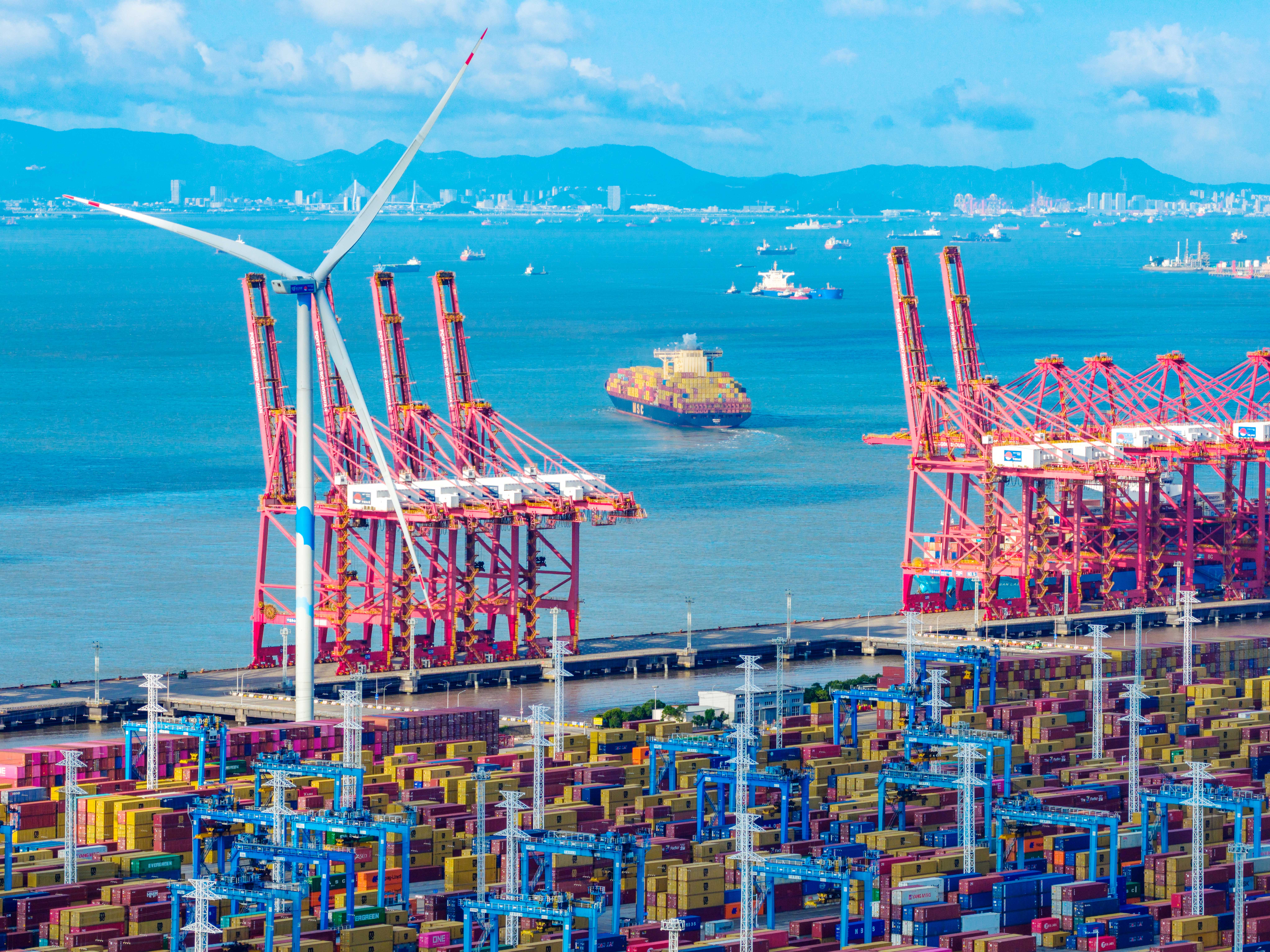 金华市公路港航与运输管理中心工会主席施海明站在观景台上,被眼前这座现代港口的恢宏气象深深震撼。尤其是当讲解员报出宁波舟山港近年来的吞吐量数据时,他由衷地为宁波舟山港的繁华,以及它联通四海、链接全球的开放气魄感到自豪。