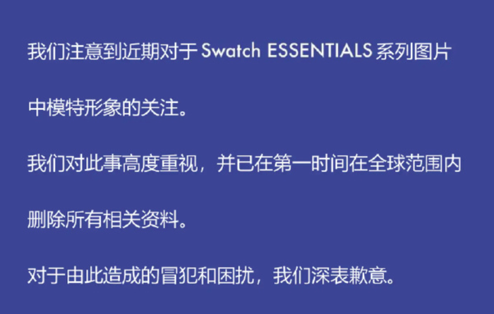 Swatch官网模特图片被指辱华,公司发布致歉声明