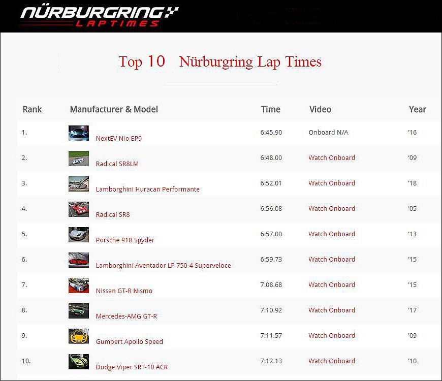 德国当地时间5月12日下午,蔚来EP9在纽博格林北环赛道刷出了6分45秒900的圈速,这个成绩刷新了当前量产车圈速纪录!从目前纽北的圈速排行榜来看,这个成绩也比之前的最速车型Radical SR8LM要快上2秒多,EP9的性能已经完爆法拉利LaFerrari、迈凯伦P1、保时捷918(纽北6分57秒)等老牌超跑,电动车的发展势头可见一斑。
