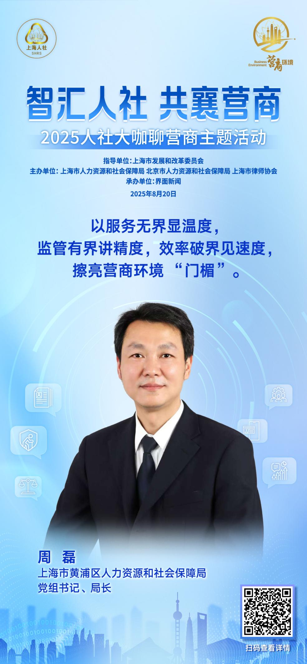 聚焦人社领域创新实践,8月20日上午,“智汇人社 共襄营商”人社大咖聊营商主题活动成功举行。本次活动由上海市发展和改革委员会指导,上海市人力资源和社会保障局、北京市人力资源和社会保障局、上海市律师协会共同主办,界面新闻承办。活动邀请了行业协会代表、企业高管、高校学者、知名律师等来自各领域的大咖嘉宾,以主旨演讲与圆桌讨论的方式深入交流,为破解领域内营商环境痛点贡献专业智慧。