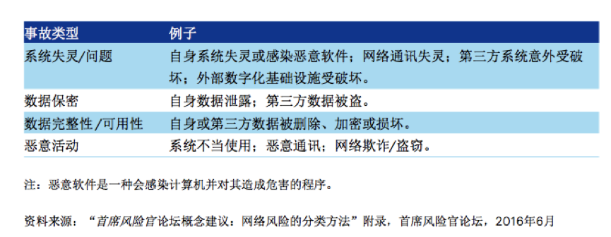 根据瑞士再保险分析,人们对网络攻击/安全事故造成损失的担忧,已不再局限于数据丢失、被盗或损坏,还包括对企业财产和声誉造成的潜在损害,以及业务中断或关键基础设施遭受严重破坏的相关损失。损失可能来自组织内外部的恶意攻击,也可能是设备意外或人为错误造成的。