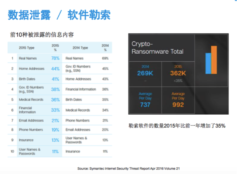 AIG提供的一份报告里也对勒索软件的数量做了统计,根据数据统计,勒索软件2015年的数量比前一年增加了35%。